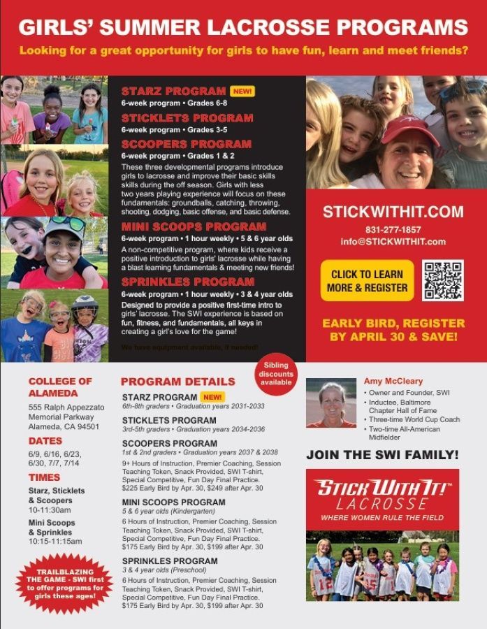 Last season, in addition to raising awareness about Alameda Lacrosse and having tons of FUN -- thanks to all of you, we raised over $12,500! To continue our momentum, we are bringing together our passionate (and growing!) Alameda Lacrosse community, as we raise funds $$'s to continue supporting our 2026-27 club needs (field rentals, referees, equipment, scholarships, marketing/recruiting, demo days & school demos, coach stipends, insurance, and admin support... to name a few :)